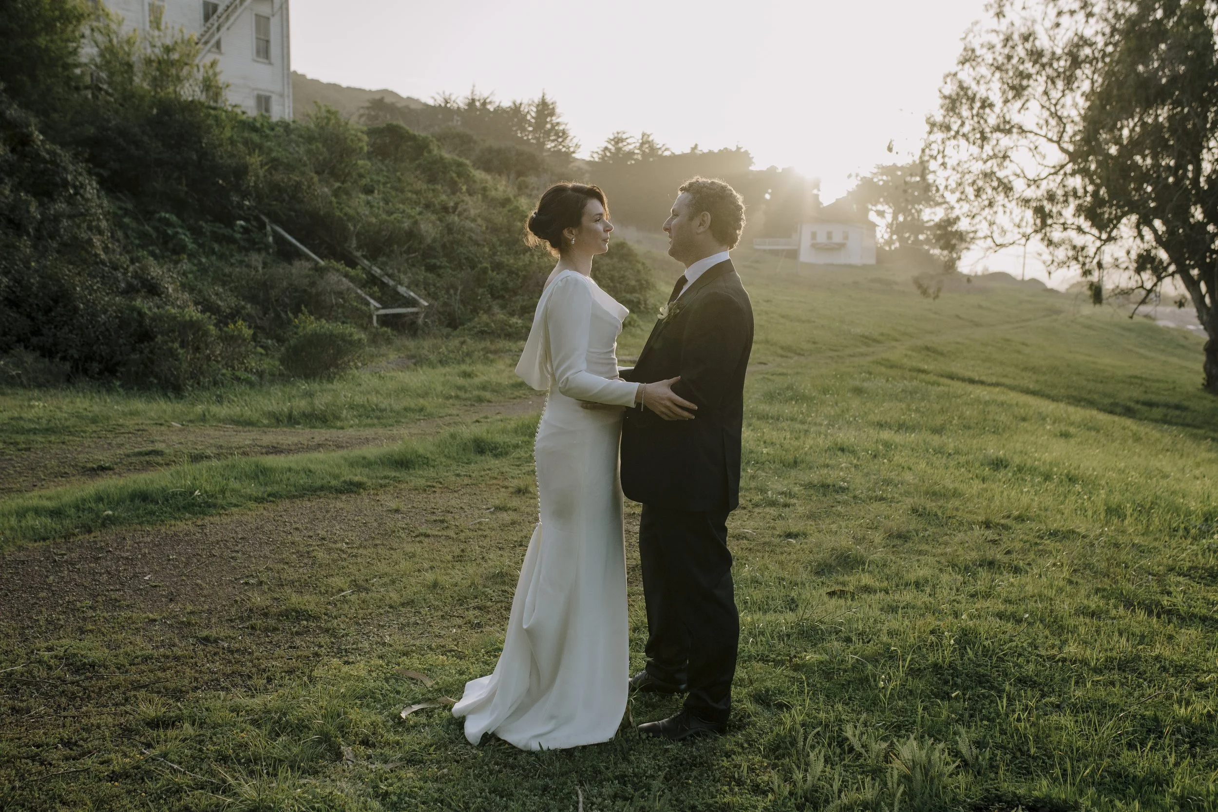 The day before the wedding, the Marin Headlands got absolutely hammered by rain. Like, sideways. And then Saturday arrived at a crisp 68 degrees, clear and golden, like the weather had read the room.